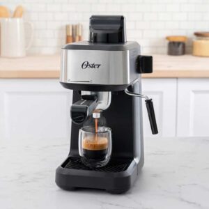 Prepárate para disfrutar café estilo barista desde la comodidad de tu hogar. La Cafetera de Vapor Oster te permite elaborar espresso intenso, cappuccinos cremosos y lattes perfectamente espumados, gracias a su diseño práctico y su potente sistema de vapor.
