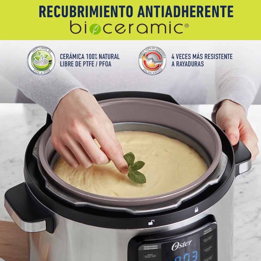 - Olla de 7,5 litros de capacidad con recubrimiento Bioceramic 100% natural y libre de PTFE y PFOA